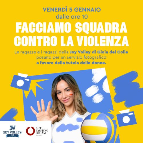 • Dalle 10:00 alle 12:00, lo sport femminile scende in campo! Partecipa allo shooting di sensibilizzazione insieme alle atlete della Joy Volley e dell’ASD Team Bari Femminile. Un gesto simbolico per dire, insieme, no alla violenza.