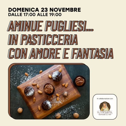 La maestria de “La Fornarina”, storica pasticceria di Giovanni Tullo, incontra l’arte dolciaria del Master Chef Rino Bufano, in un viaggio alla scoperta dei dolci alla mandorla e delle eccellenze del territorio.