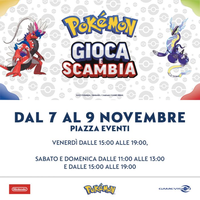 Ti aspettiamo dal 7 al 9 novembre al Pokémon Gioca & Scambia, nella Piazza Eventi del centro.