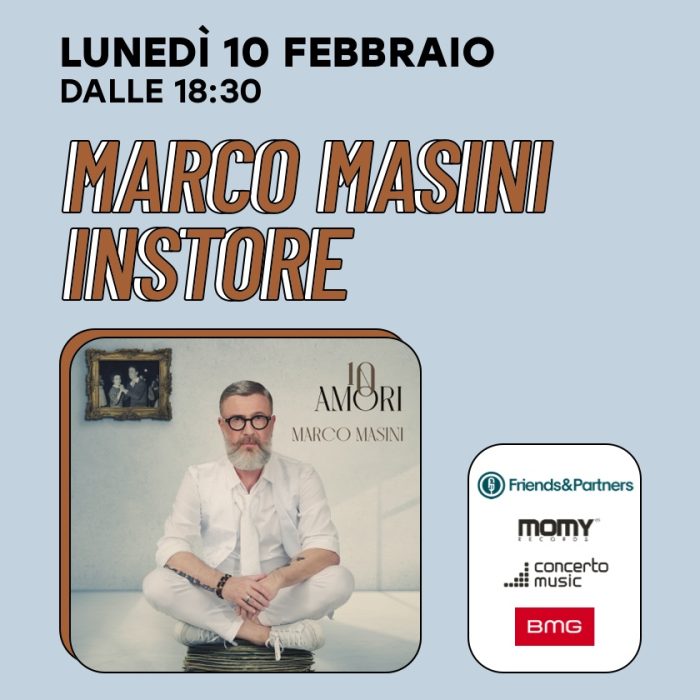 Il 10 febbraio dalle 18:30, Marco Masini incontra i fan per firmare le copie del suo nuovo album “10 amori” e per una piccola sorpresa live! Vivi un momento speciale con un grande protagonista della musica italiana.