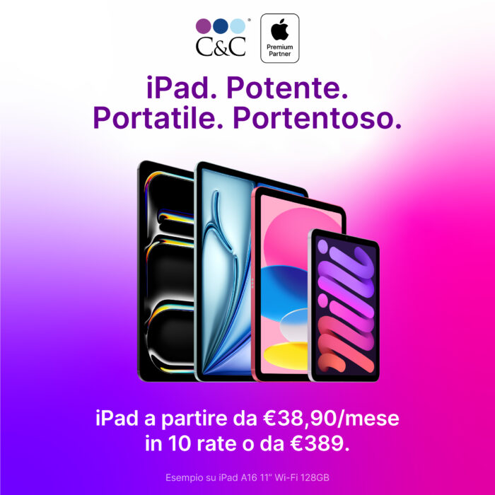 Puoi acquistarlo anche in 10 rate su cec.com o fino a 12 rate in tutti i negozi C&C Apple Premium Partner. Non lasciartelo sfuggire.