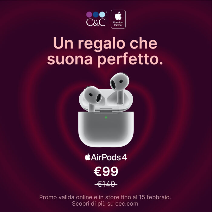 Fai battere il cuore a ritmo di musica. Sorprendi chi ami con AirPods 4 a un prezzo speciale.