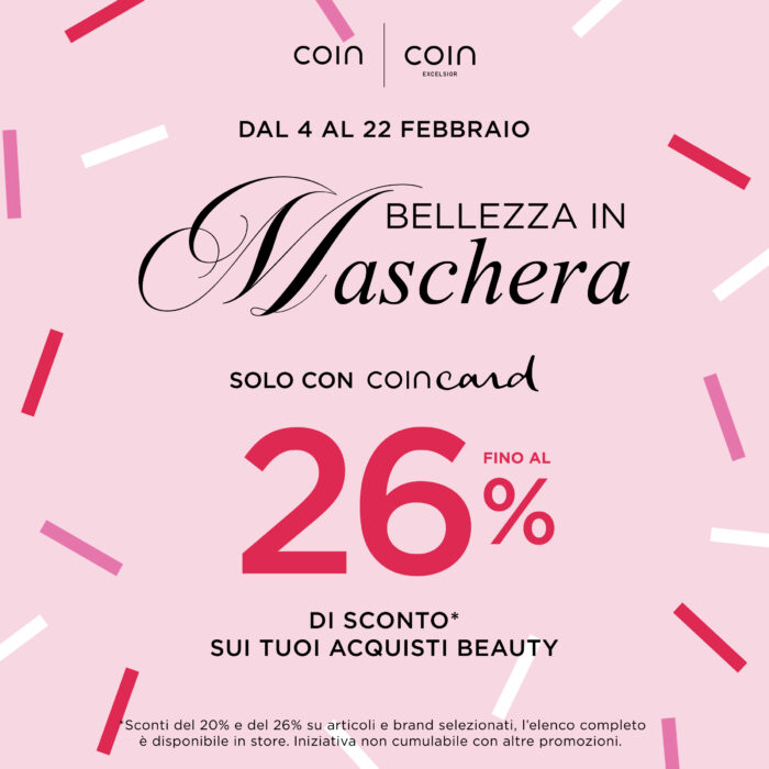 Dal 4 al 22 febbraio, speciali sconti del 20% e del 26%* con Coincard sui tuoi acquisti beauty in store: un’occasione speciale per rinnovare la routine, concedersi un nuovo profumo o lasciarsi conquistare dalle novità make-up.